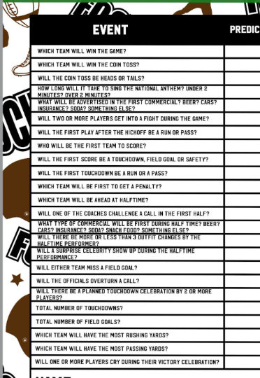 Super Bowl Prediction Game Printable