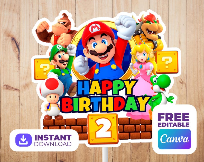 Editable Mario Bros Cake Topper Super Mario Birthday Decoration
