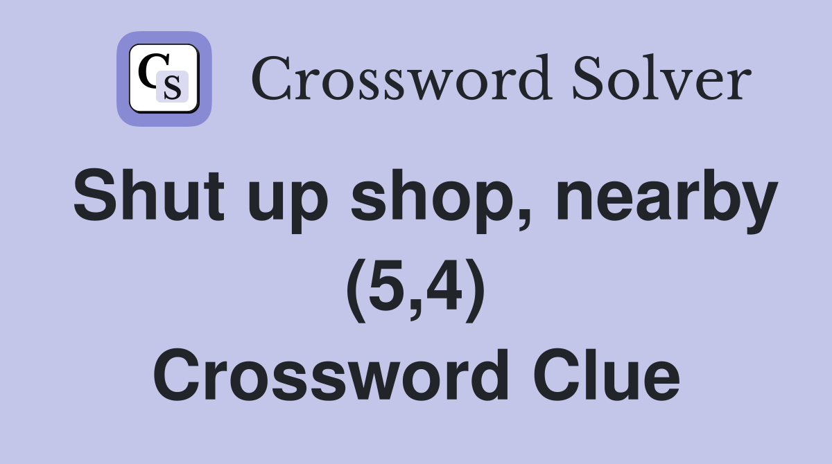 Shut up shop nearby (5 4) Crossword Clue Answers Crossword Solver