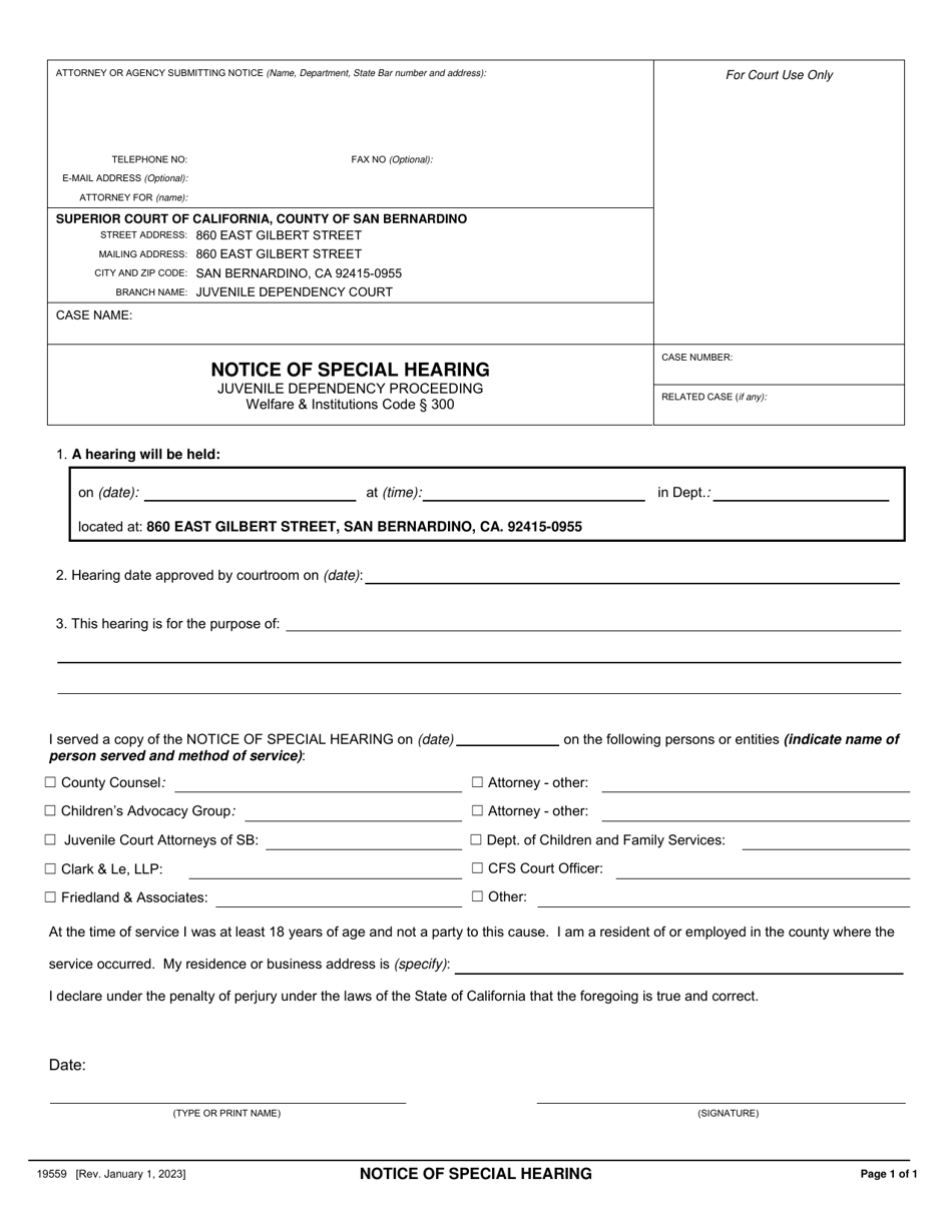 Form 19559 Download Fillable PDF or Fill Online Notice of Special