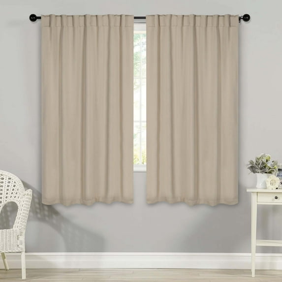 Superior Solid Blackout Back Tab Curtains Set of 2 52 quot x 63 quot Ivory