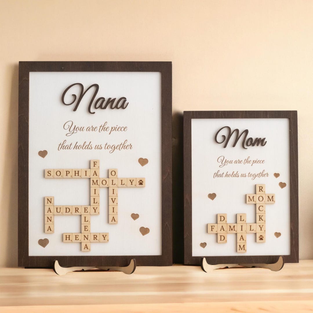 Grandkids Crossword Scrabble Wooden Sign Mother Day Family Print