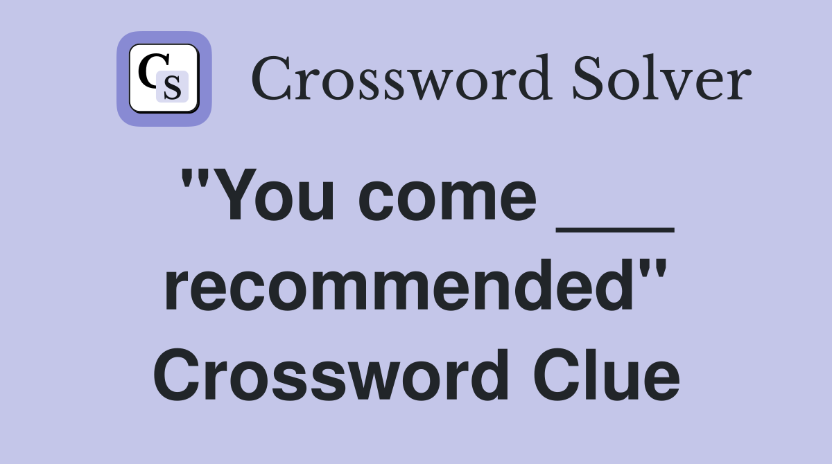 quot You come recommended quot Crossword Clue Answers Crossword Solver
