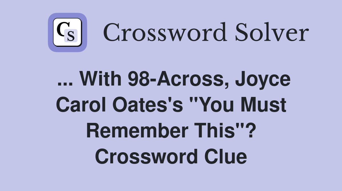 With 98 Across Joyce Carol Oates #39 s quot You Must Remember This
