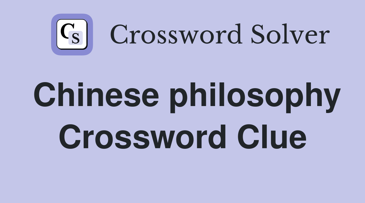 Chinese philosophy Crossword Clue Answers Crossword Solver