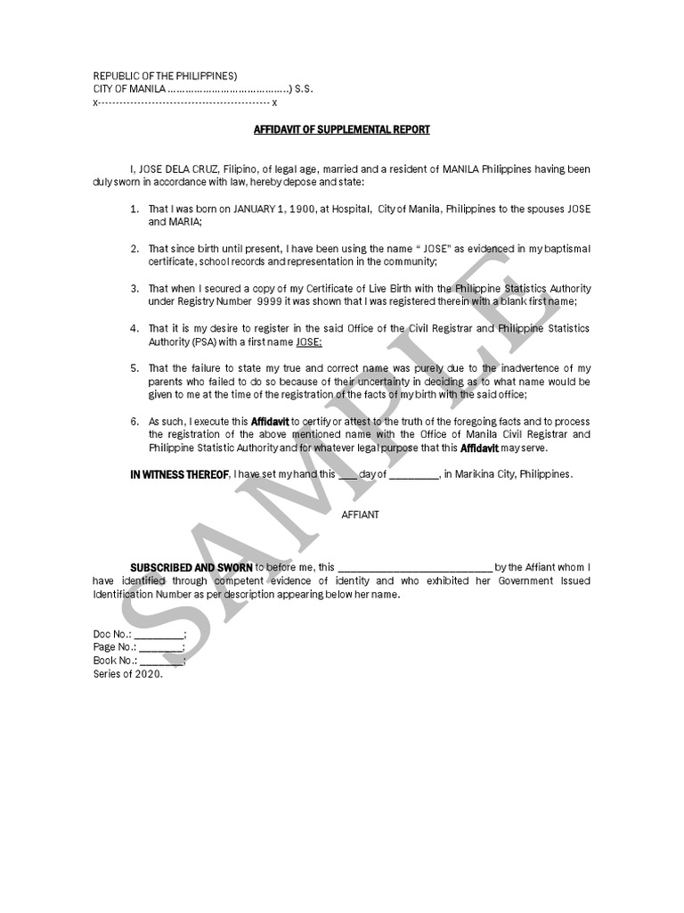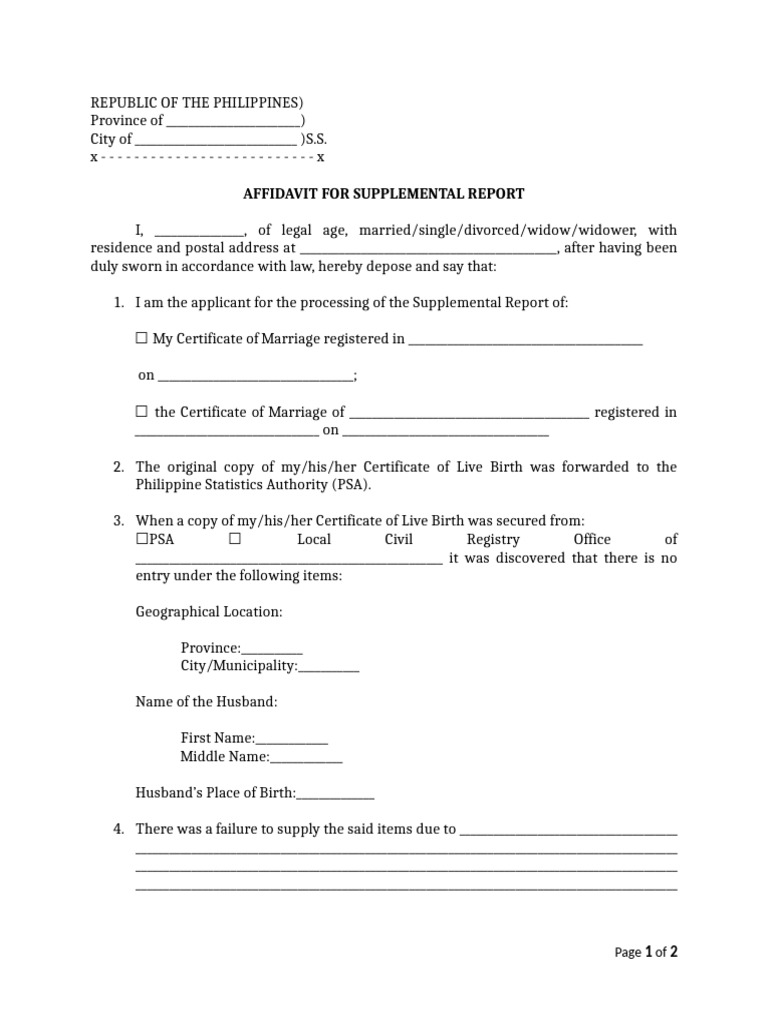 Affidavit For Supplemental Report PDF Affidavit Birth Certificate