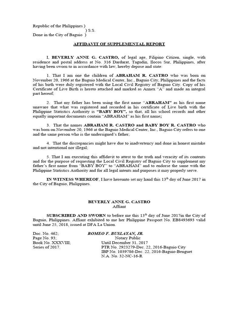 Affidavit of Supplemental Report Castro PDF Affidavit Birth