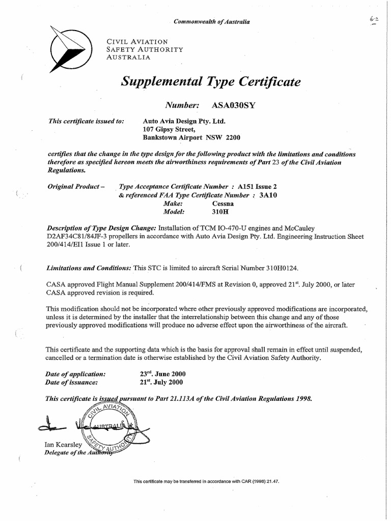 Supplemental Type Certificate Asa030sy Cessna PDF