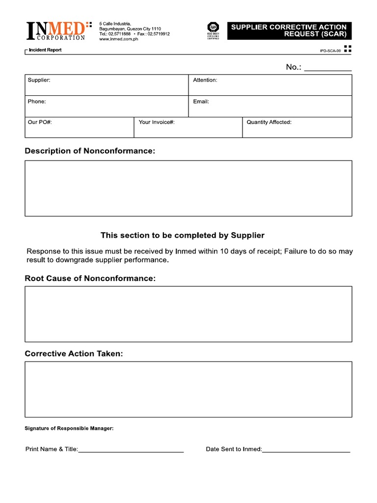 Supplier Corrective Action Request Template