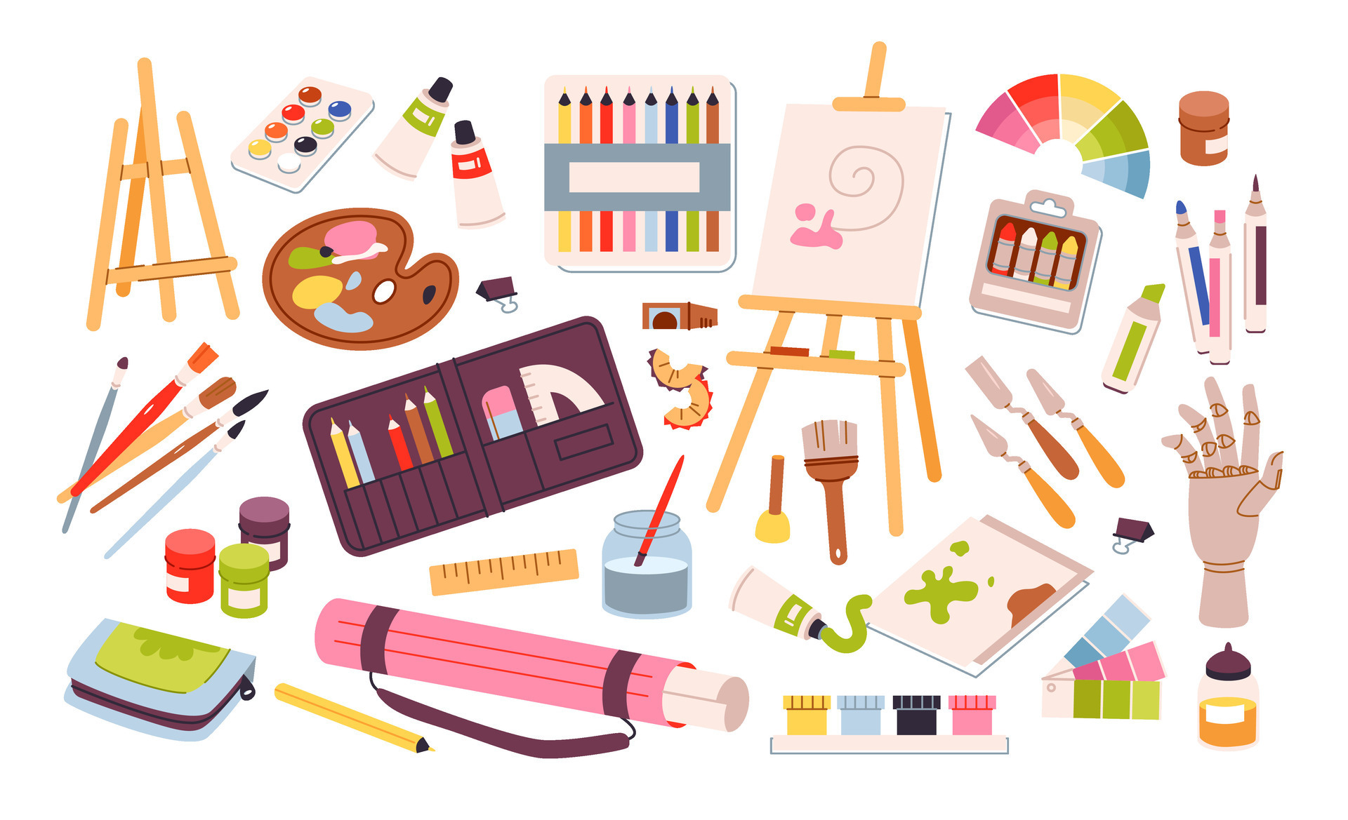 Supplies Clipart Art Supplies Doodling Elements Design Set Vector