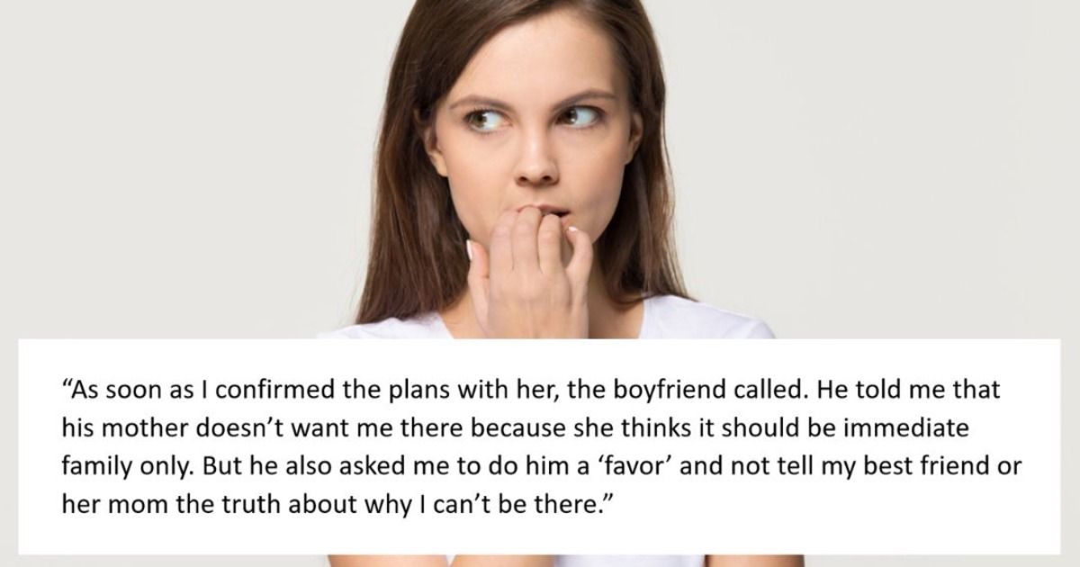 #39 My best friend #39 s boyfriend #39 s mom doesn #39 t want me at the proposal and I