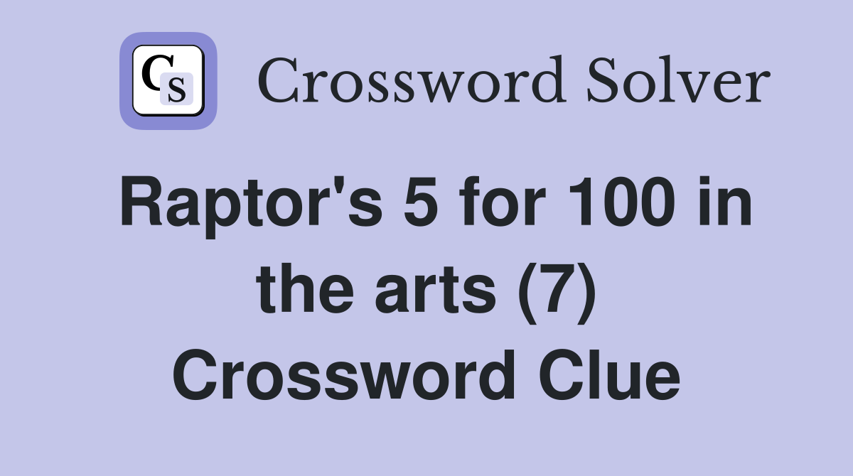 Raptor #39 s 5 for 100 in the arts (7) Crossword Clue Answers Crossword