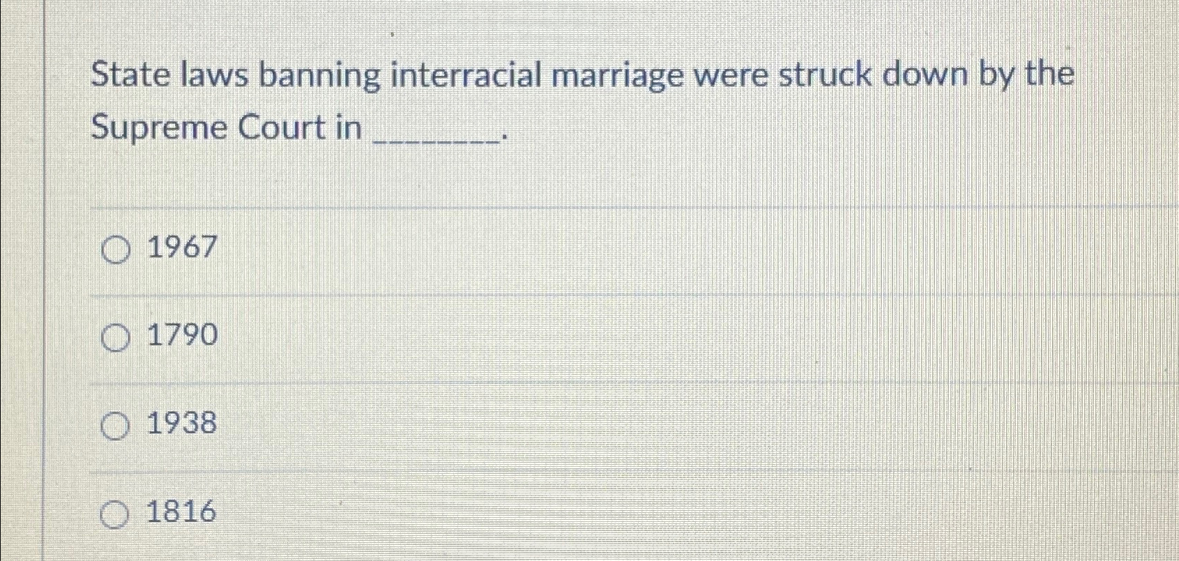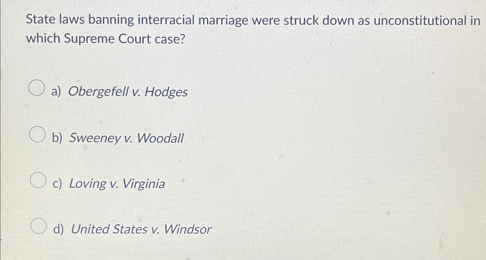 Solved State laws banningmarriage were struck Chegg com