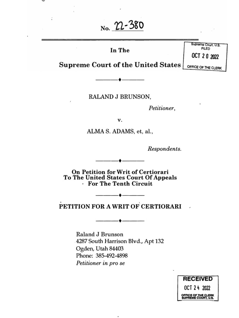Case 22 380 Brunson V Adams DENIED Again By Supreme Court Lisa Remillard