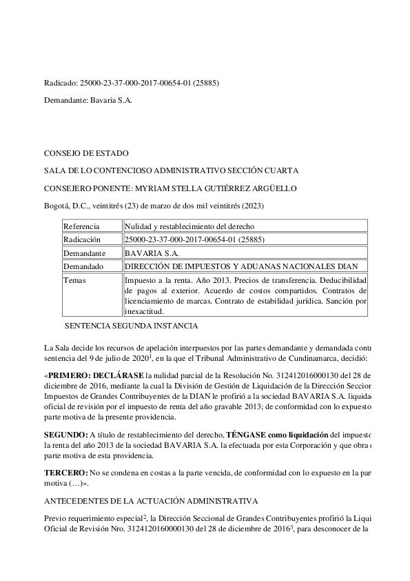 Colombia vs Bavaria S A June 2023 Supreme Administrative Court Case
