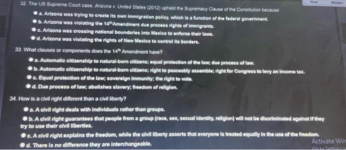 Solved 32 The US Supreme Court case Arizona v United Chegg com