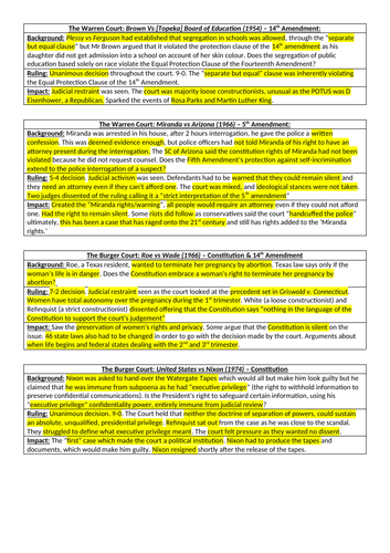 AQA A Level Government Politics: US Supreme Court Case Studies