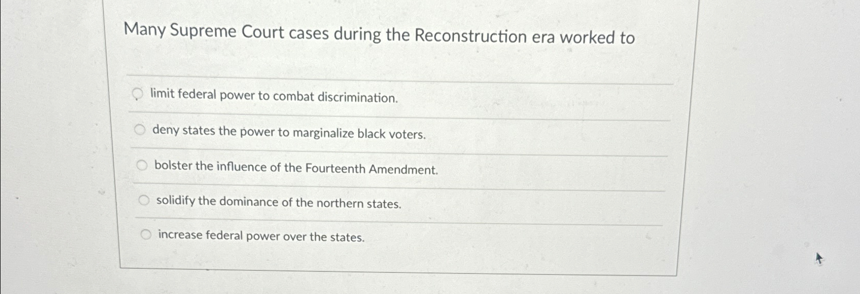 Solved Many Supreme Court cases during the Reconstruction Chegg com