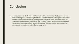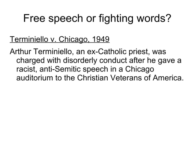 Fighting words incitement true threats and the First Amendment PPT