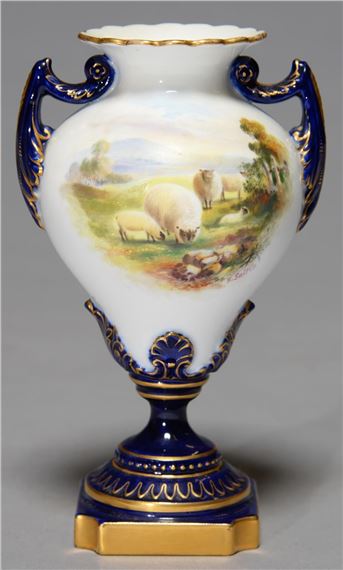 E Salter A ROYAL WORCESTER TWO HANDLED OGEE VASE 1898 PAINTED BY E