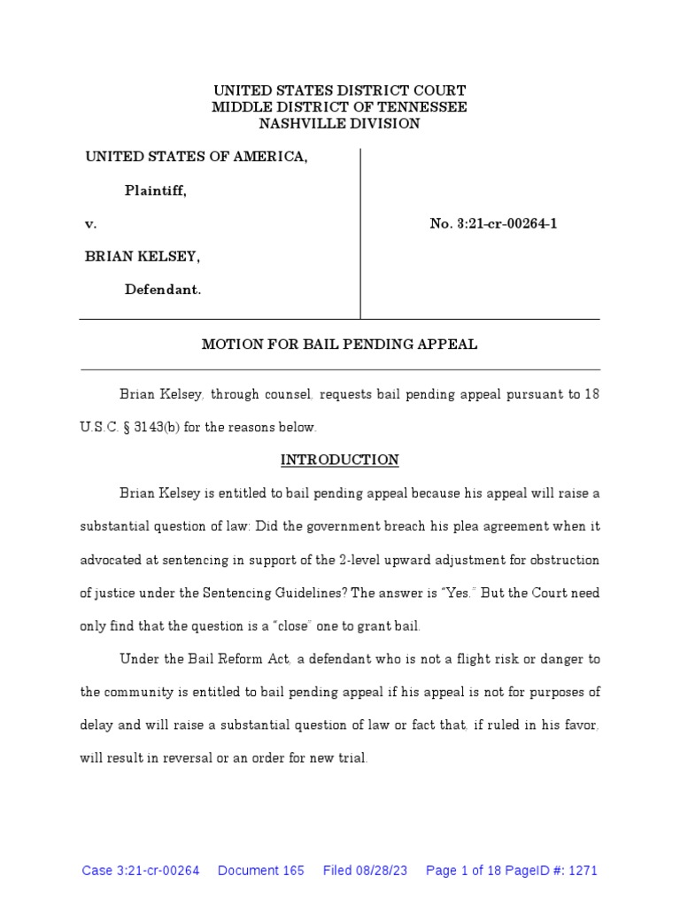 Brian Kelsey Motion For Bail Pending Appeal PDF Plea Plea Bargain
