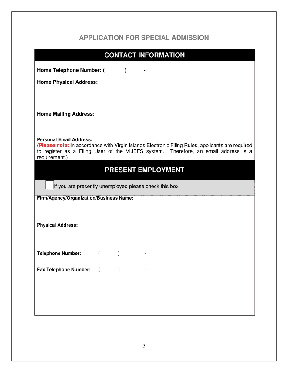 Virgin Islands Application for Special Admission to the Virgin Islands