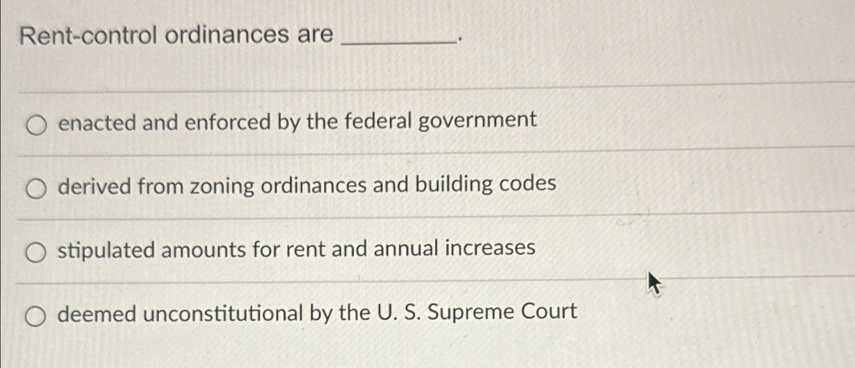 Solved Rent control ordinances areenacted and enforced by Chegg com
