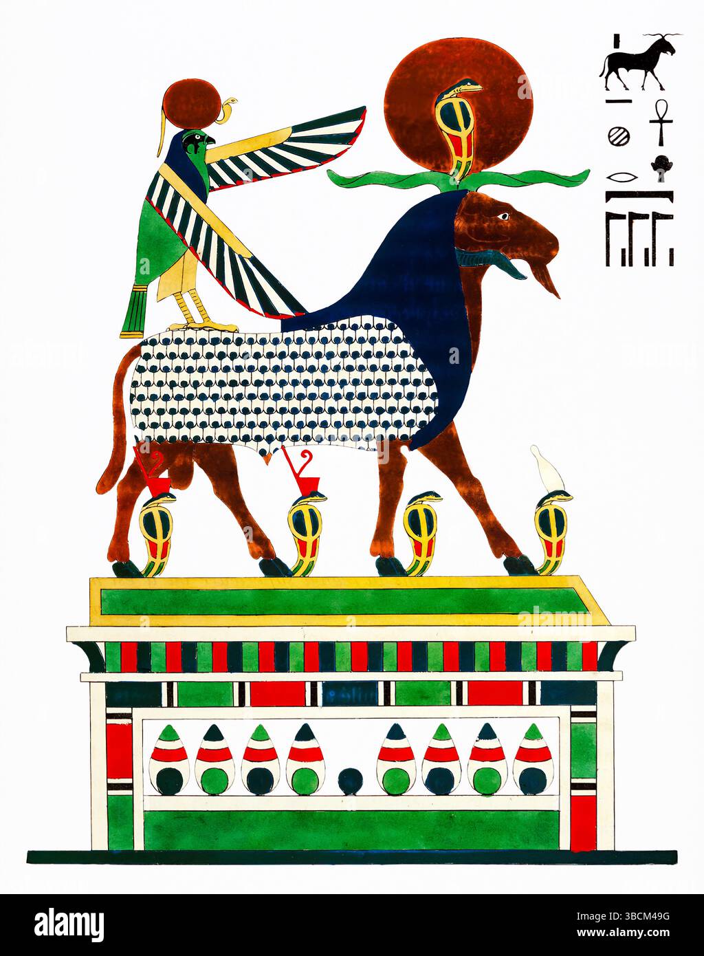 Antique hand colored engraving of Amon Ra supreme deity in Ancient