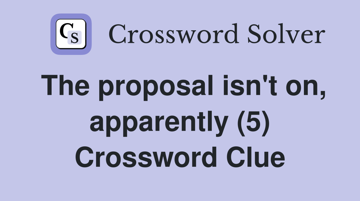 The proposal isn #39 t on apparently (5) Crossword Clue Answers