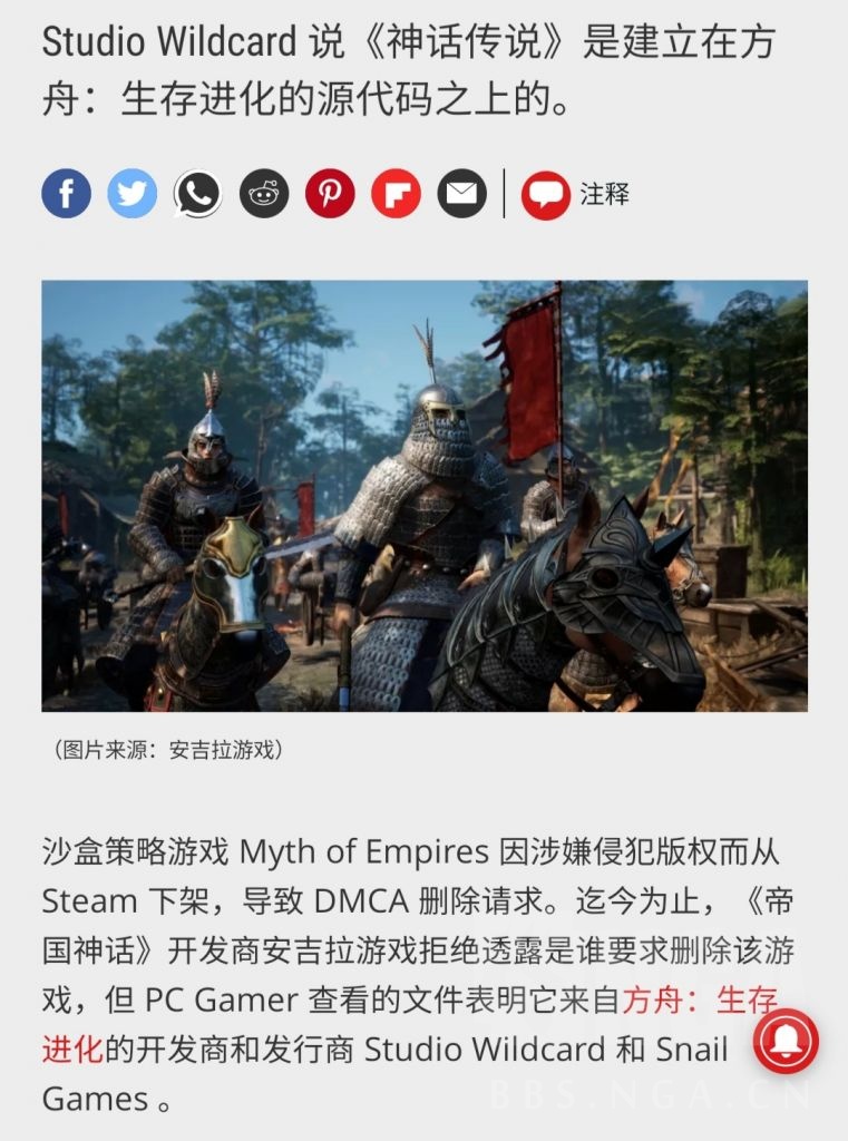 业界新闻 《方舟:生存进化》工作室指控《帝国神话》抄袭其源代码 后者已被下架。 NGA玩家社区
