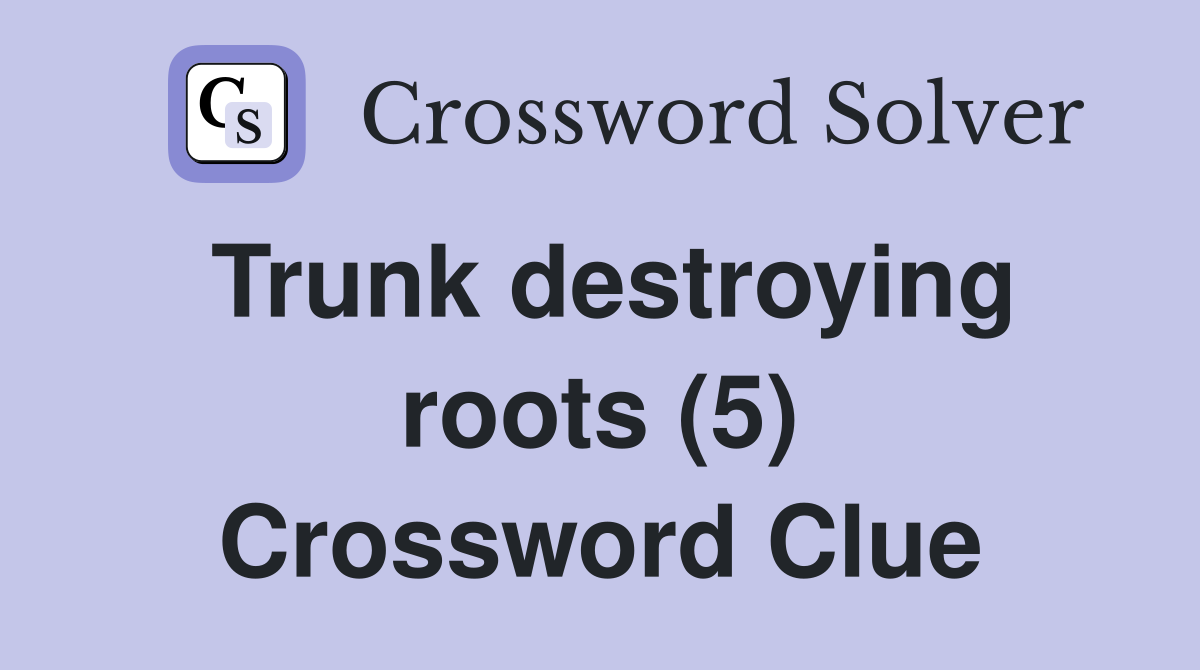 Trunk destroying roots (5) Crossword Clue Answers Crossword Solver