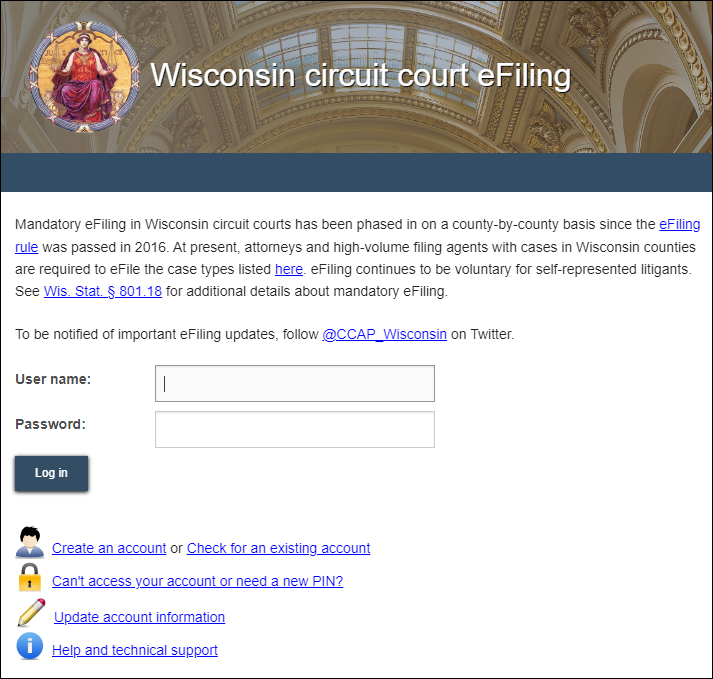 Circuit court eFiling Logging into Wisconsin circuit court eFiling