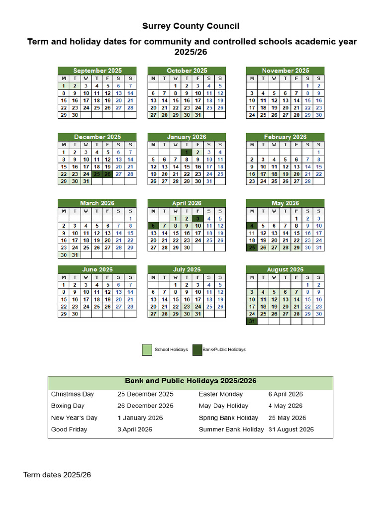 Surrey County Council School Term Dates 2025 26 PDF