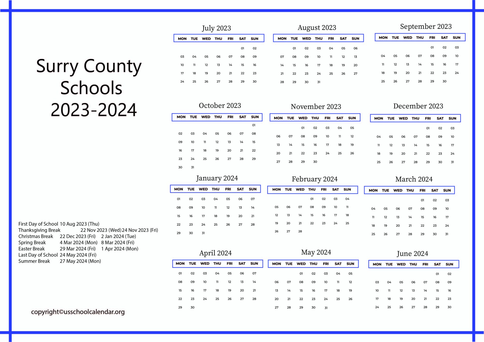 Surry County Schools Calendar Holidays 2023 2024