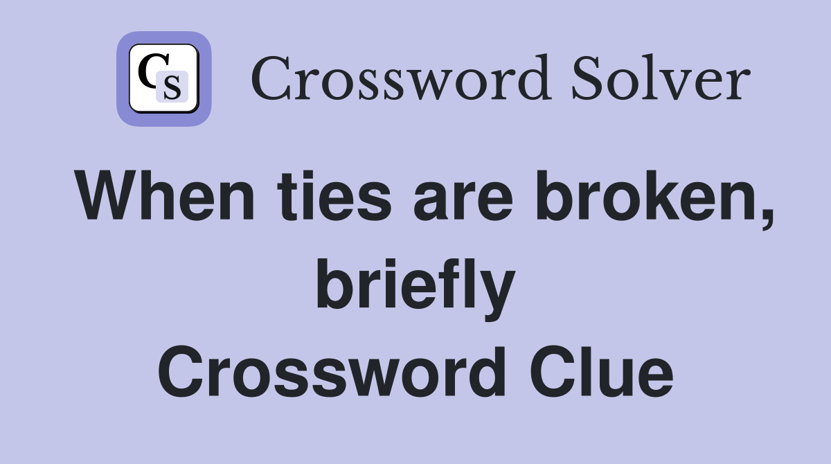 When ties are broken briefly Crossword Clue Answers Crossword Solver