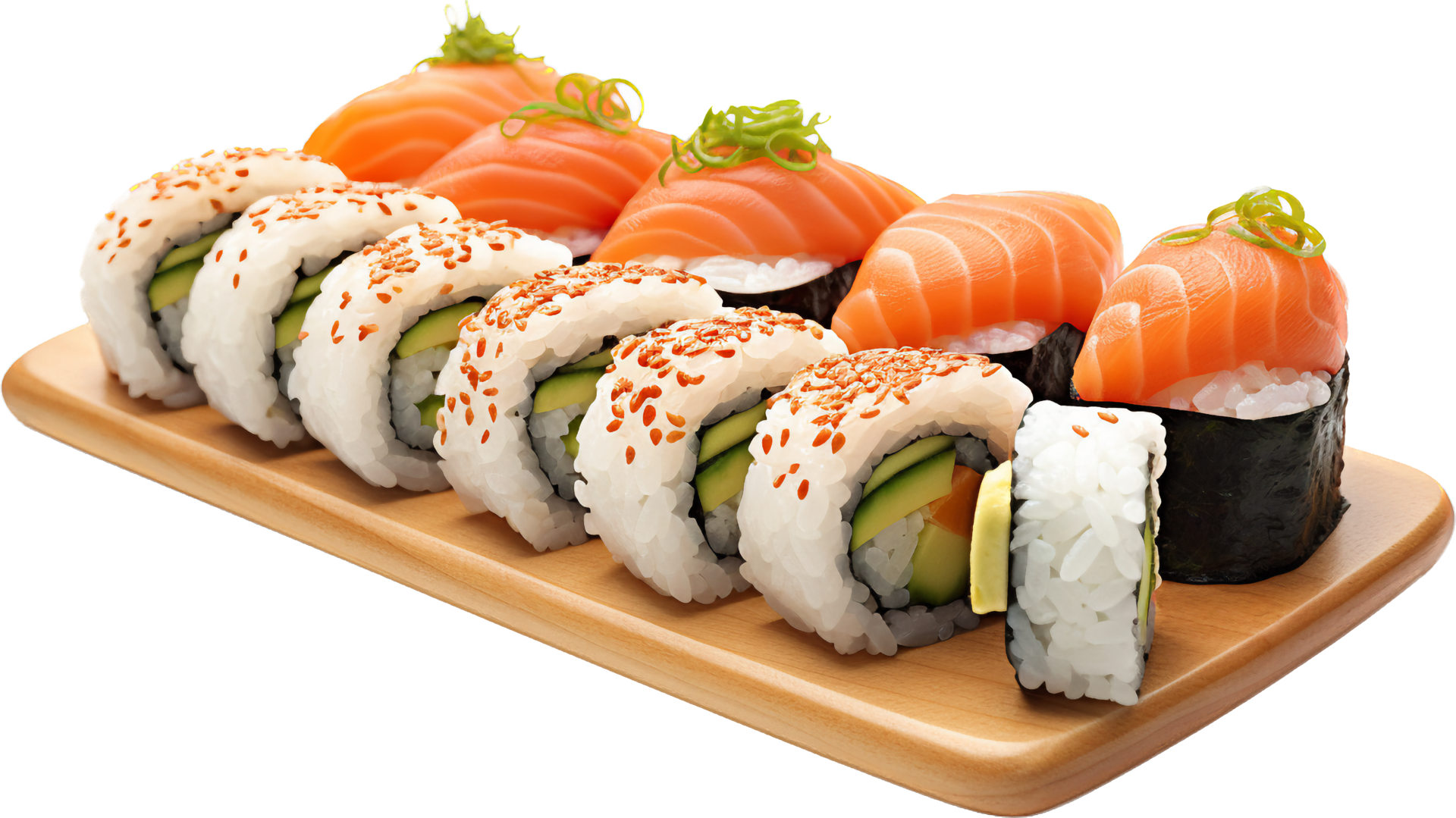 japonês Sushi rolos com legumes e salmão peixe clipart em transparente