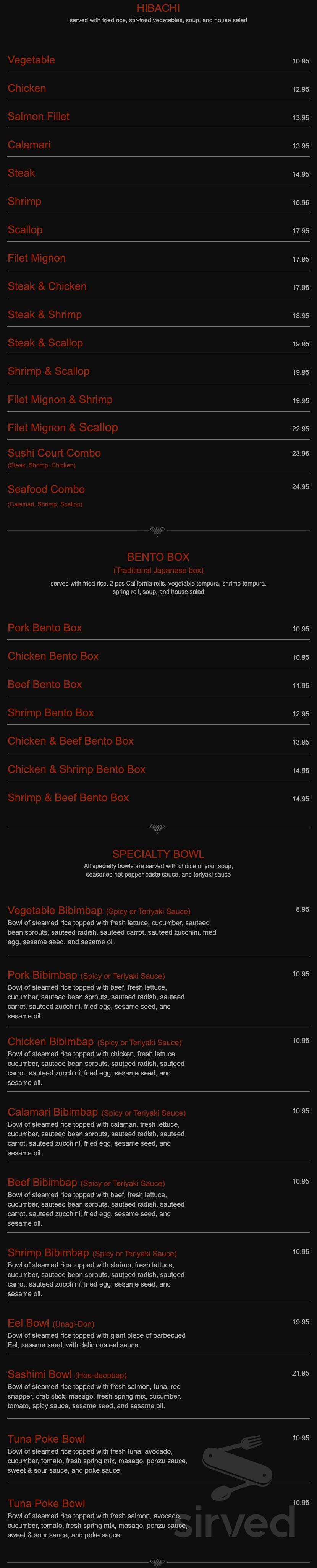 Menu for Sushi Court in Fayetteville NC Sirved
