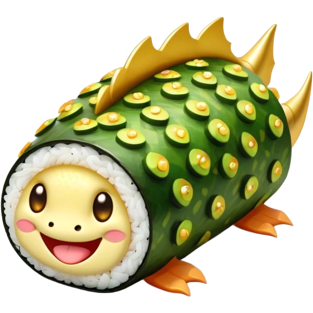 Cute Kawaii Dragon Roll long and curled like a tiny dragon bright