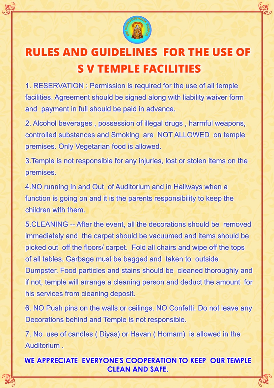 RULES GUIDELINES FOR THE USE OF SV TEMPLE FACILITIES Sri
