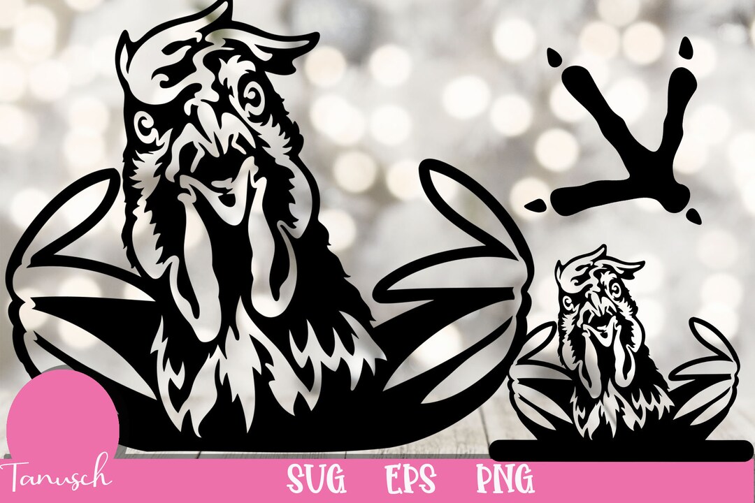Peeking Rooster Silhouette SVG Gluck It Chicken Speaking Farm Animals