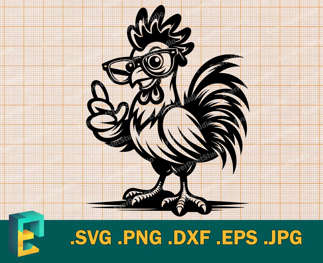 Chicken SVG Cricut Silhouette Funny Rooster With Glasses SVG