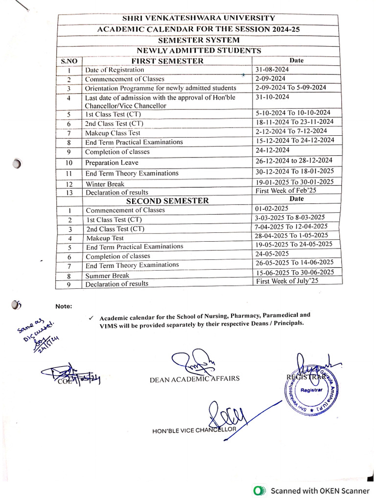 SV University Academic Calendar 2024 25 PDF Academic Term