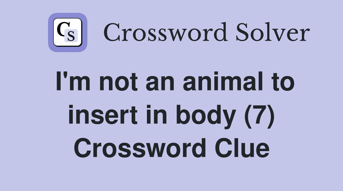 I #39 m not an animal to insert in body (7) Crossword Clue Answers