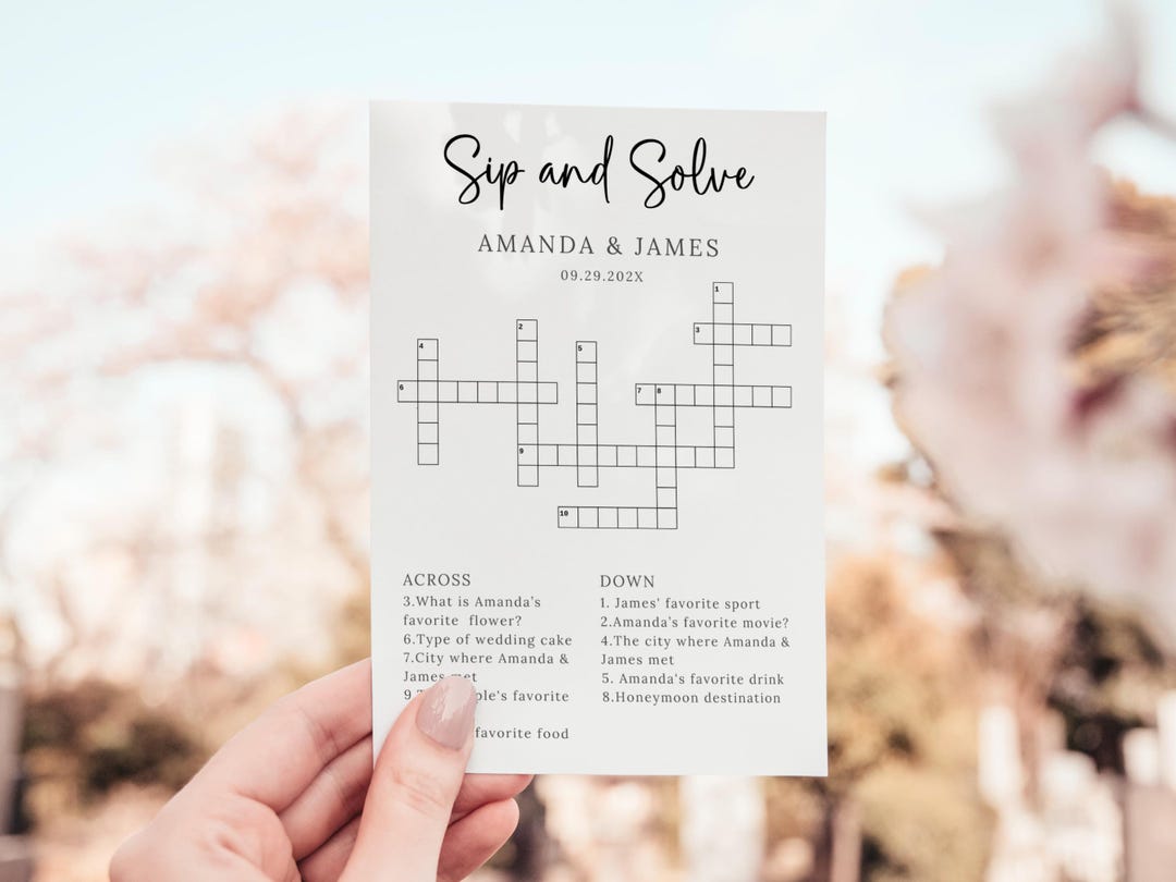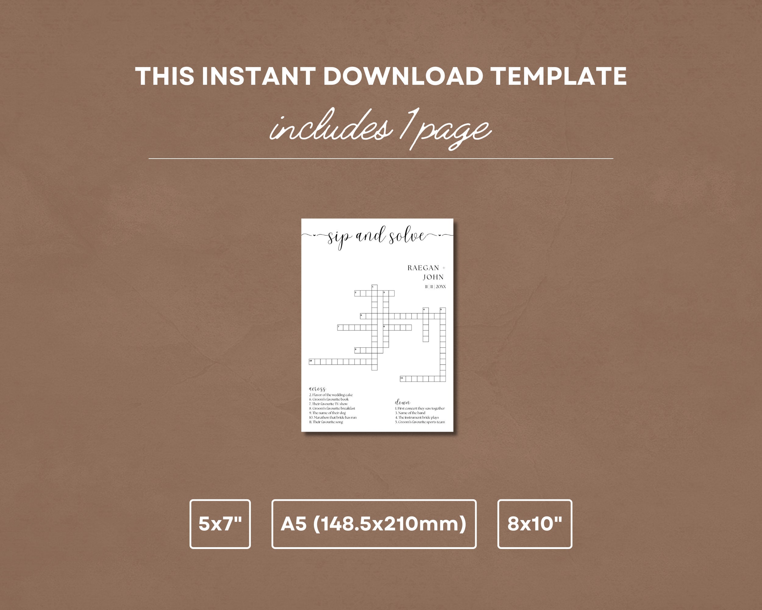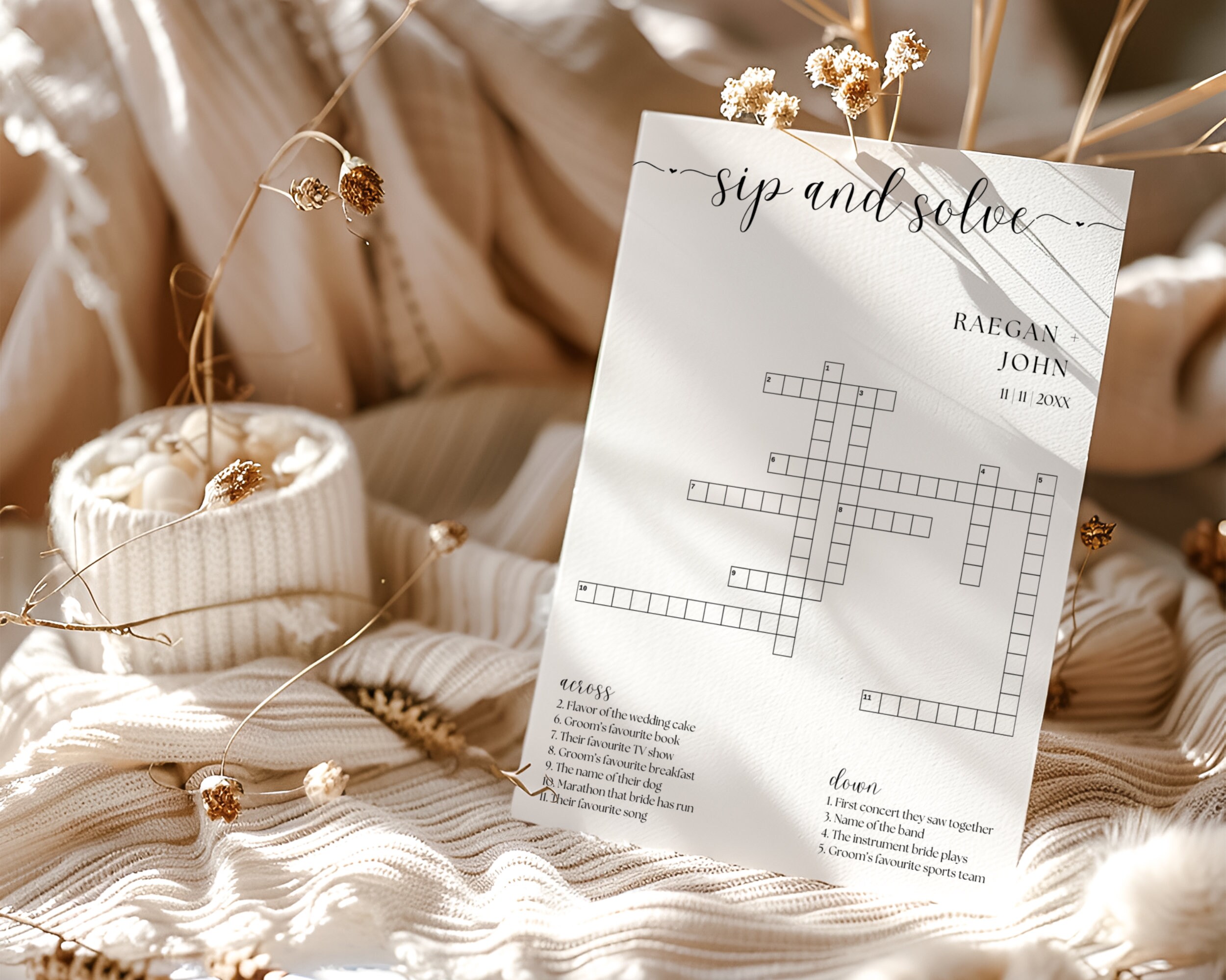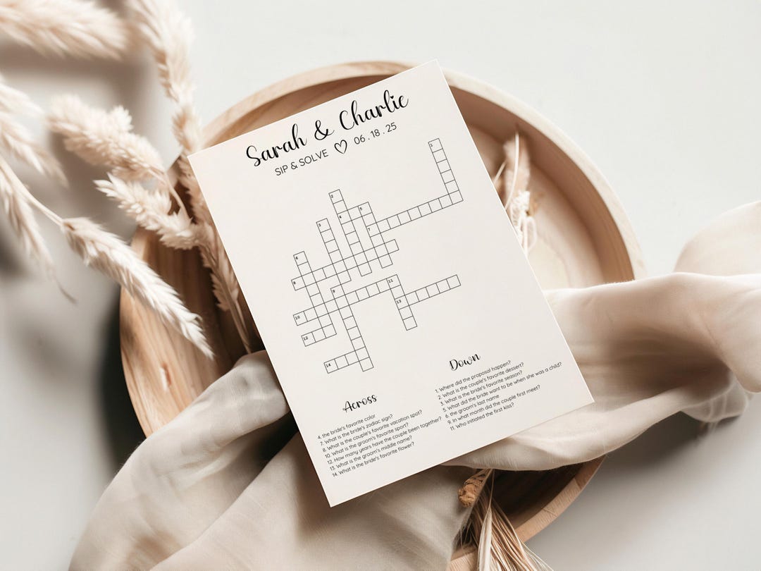 Custom Wedding Small Crossword Puzzle Minimalist Sip Solve Template