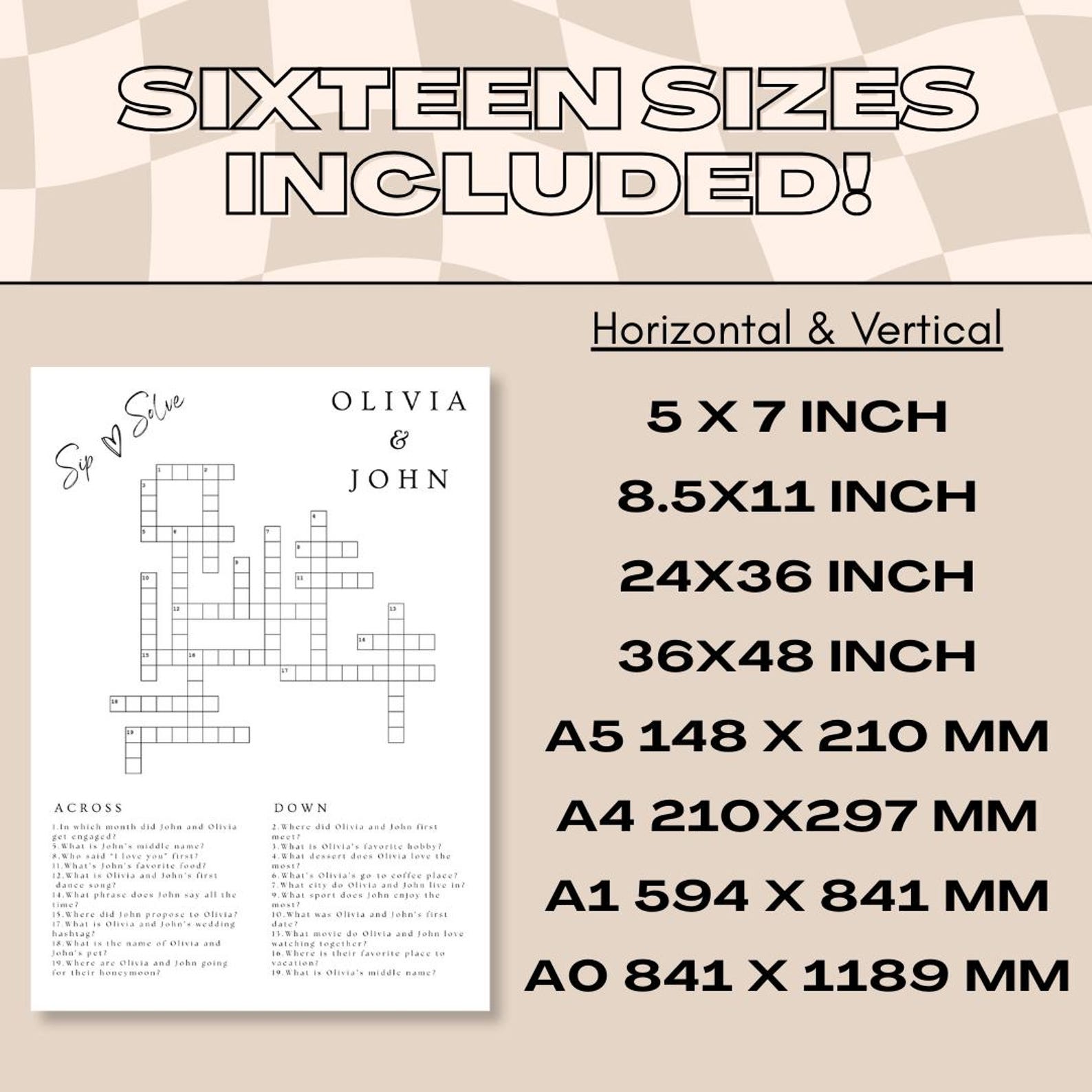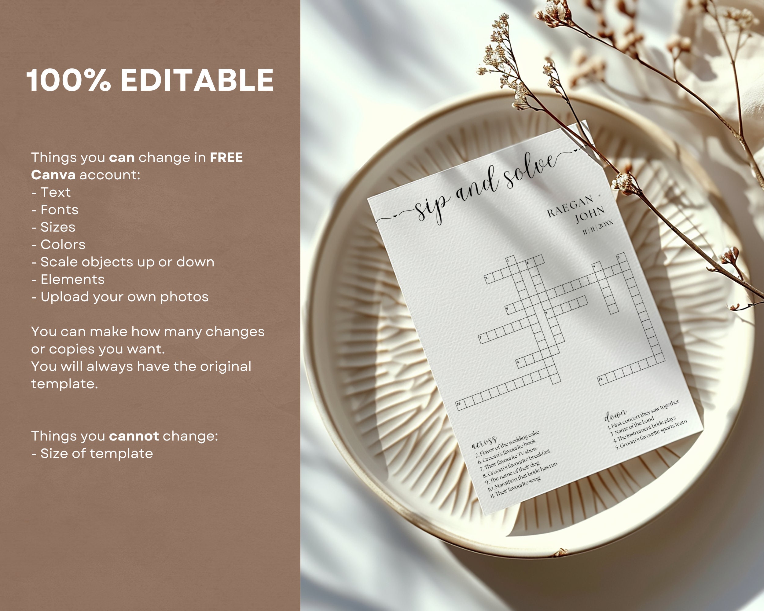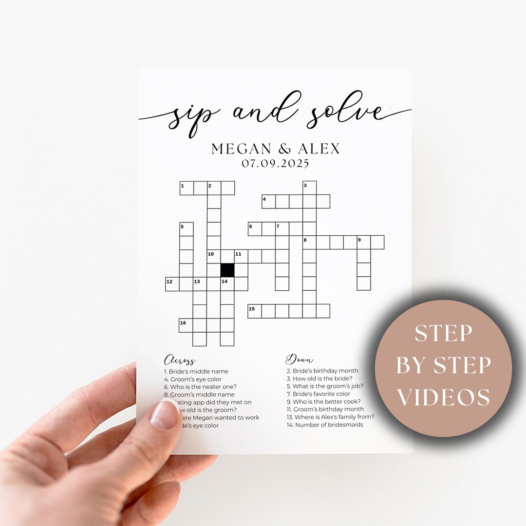 Custom Wedding Small Crossword Puzzle Minimalist Sip Solve Template