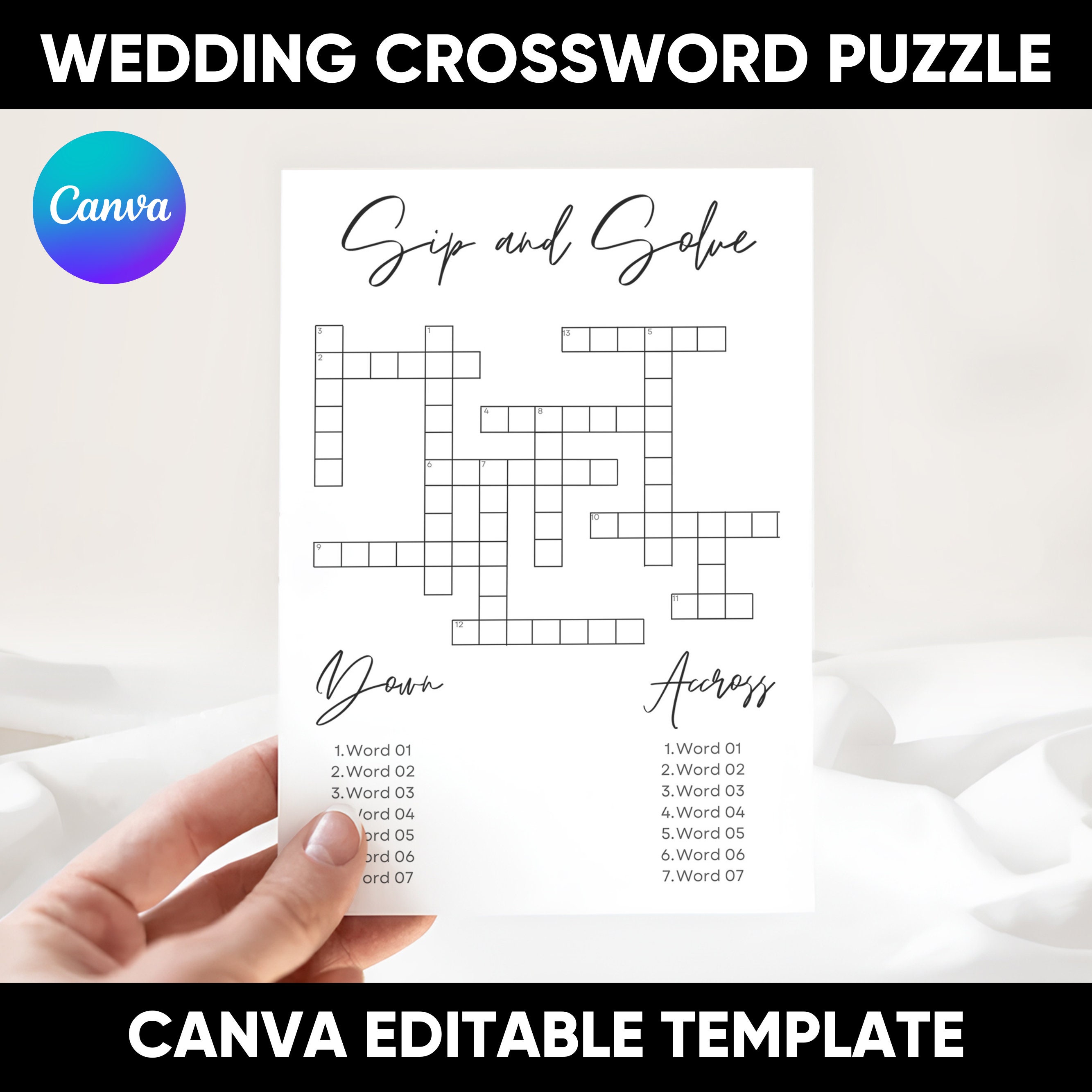 Custom Wedding Crossword Puzzle Template Minimalist Sip and Solve