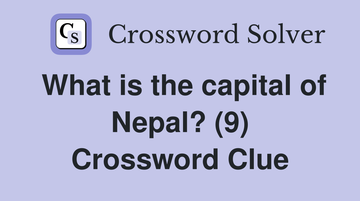 What is the capital of Nepal? (9) Crossword Clue Answers Crossword