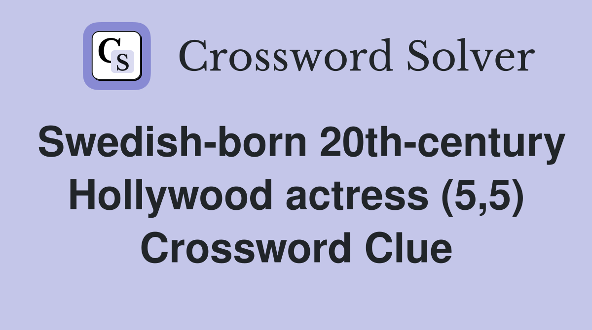 Swedish born 20th century Hollywood actress (5 5) Crossword Clue