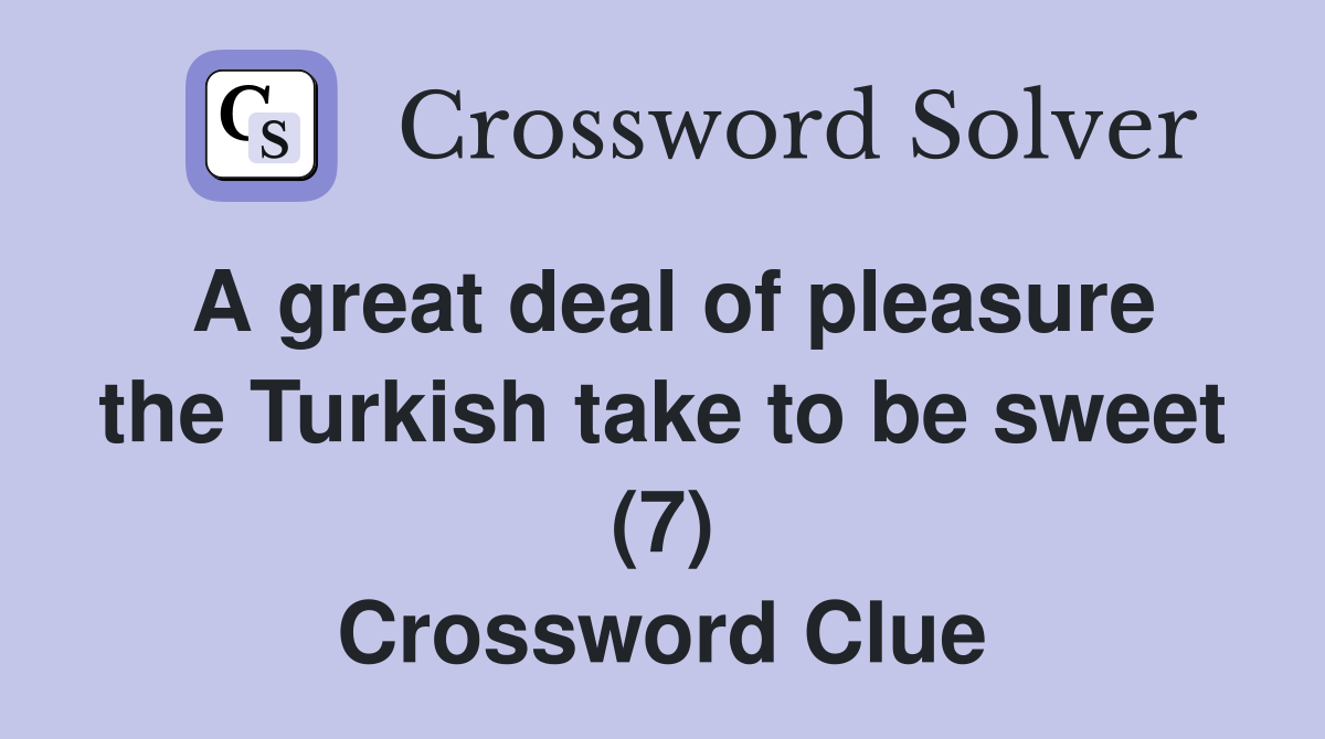 A great deal of pleasure the Turkish take to be sweet (7) Crossword