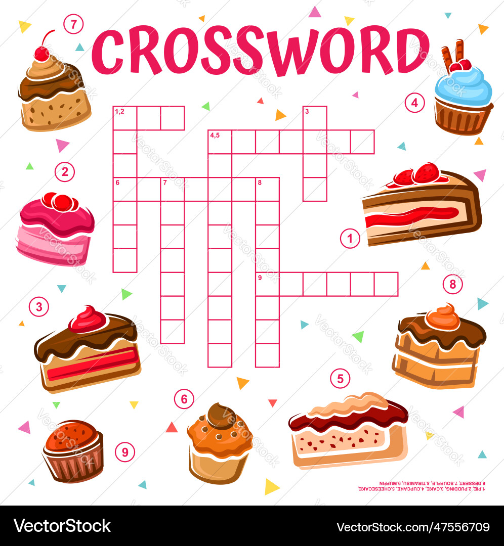 Cakes cupcakes and pies crossword grid quiz game Vector Image